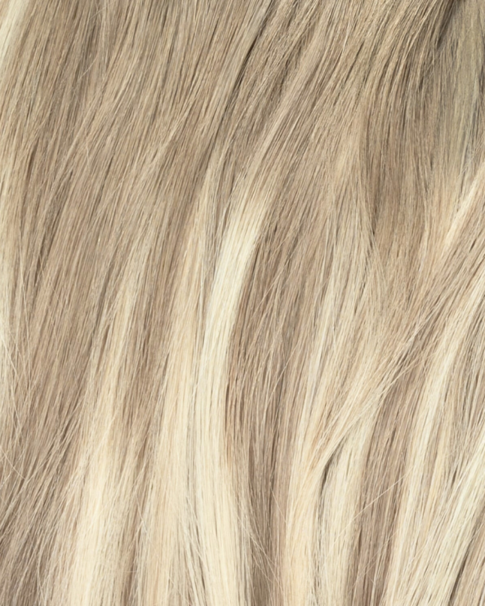 Blondeshell a rooted cool dark blonde base that transitions into cool lowlights and neutral blonde highlights for an effortless, sun-kissed vibe.