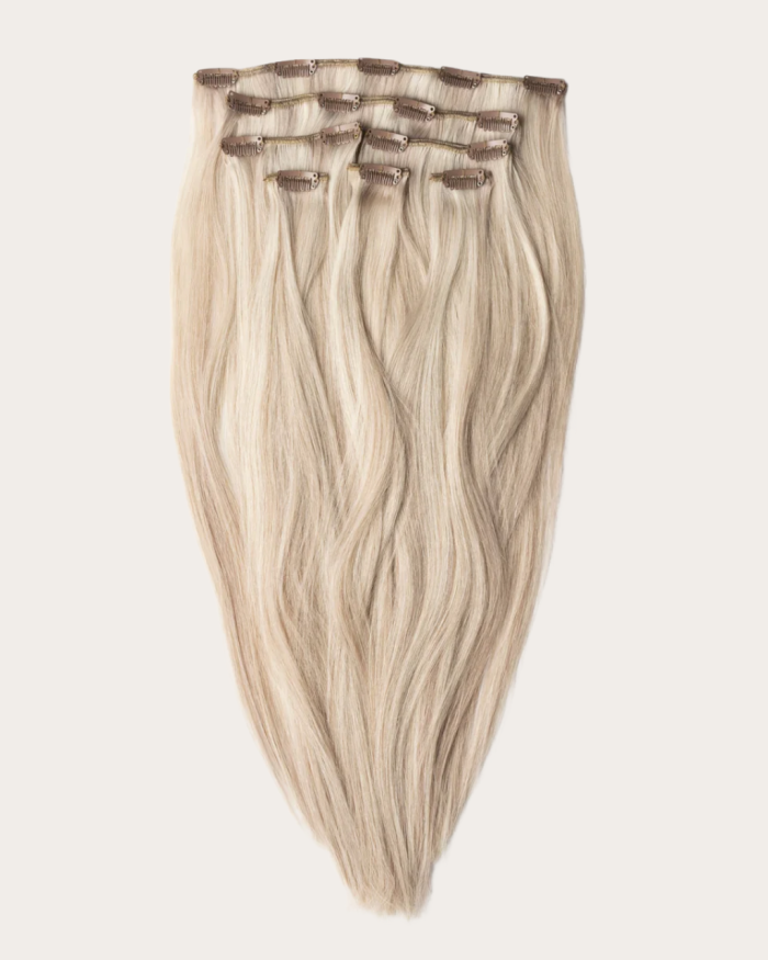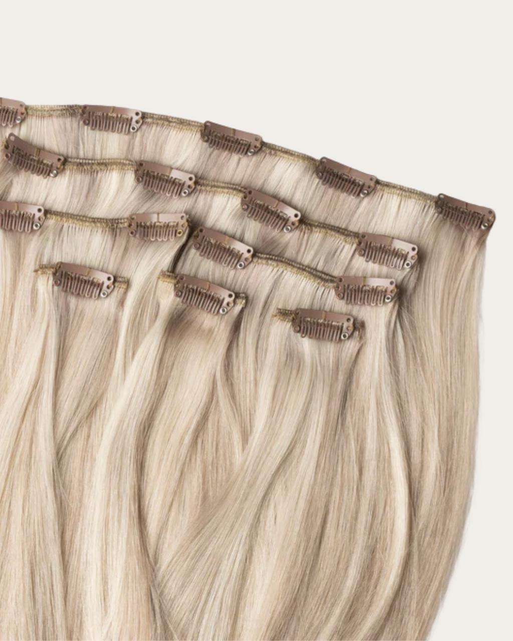 Transform your look in minutes with Extensionaire Classic Clip-In Extensions crafted from 100% Remy human hair for a natural, luxurious finish. Each set includes seven pieces, weighing 120 grams.